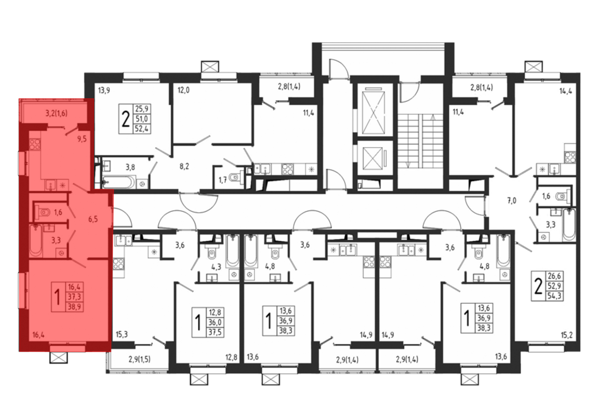 6 510 632 ₽1-к.квартира, 36.9 м², 2 эт.