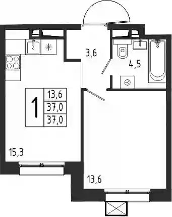 6 545 424 ₽1-к.квартира, 36.7 м², 4 эт.