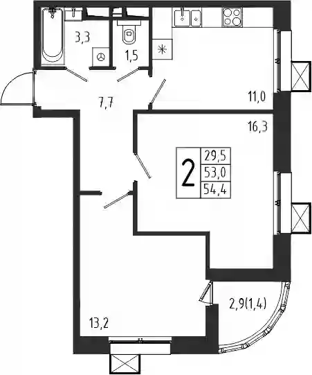 12 528 602 ₽3-к.квартира, 53.88 м², 16 эт.