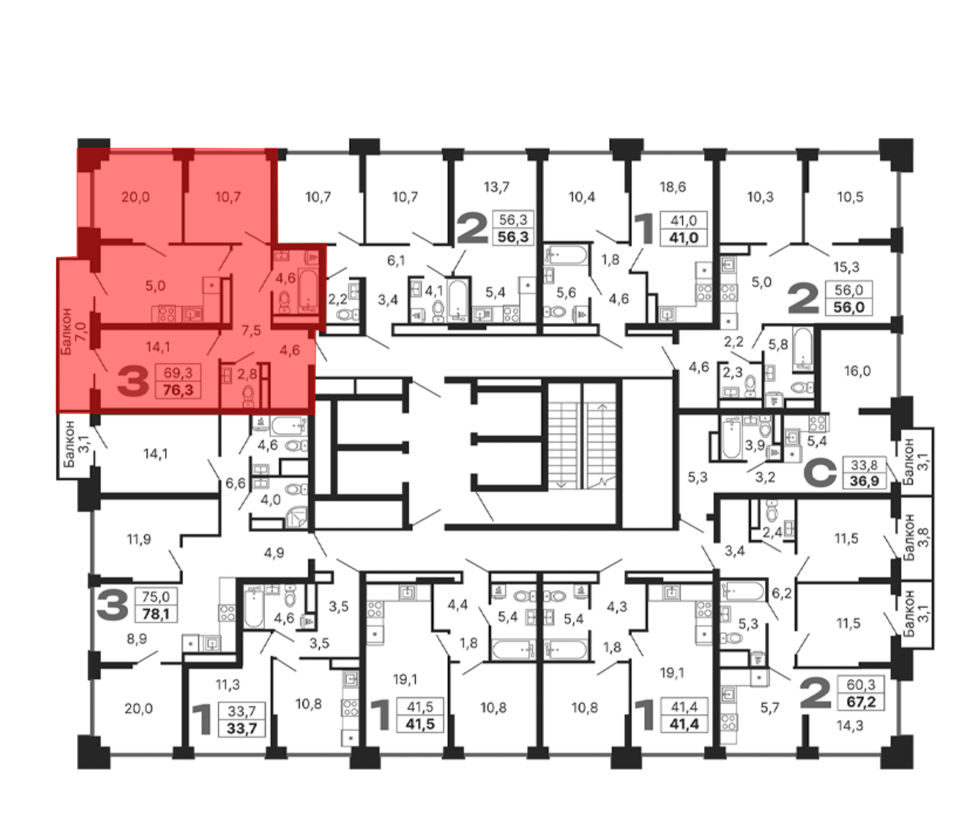25 569 392 ₽3-к.квартира, 64.5 м², 33 эт.