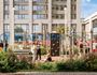 На 1 этаже здания находится множество торговых точек и услуг, включая большой детский центр с игровой и образовательной зонами. Здесь также работают спортивные и детские клубы, медицинский центр, ресторан, супермаркет и центр Сообщества. В деловой части здания располагаются офисы и фуд-корт. Между корпусами обустроен уютный двор-сад, где можно насладиться спокойствием в арт-зонах с гамаками, поработать на свежем воздухе в коворкинге или отдохнуть на шезлонгах у пруда. Здесь также есть детские игровые площадки, воркаут-зона и кинотеатр под открытым небом. Для владельцев автомобилей в комплексе предусмотрен подземный паркинг с зимним садом, пунктом подкачки колес и зарядками для электромобилей.