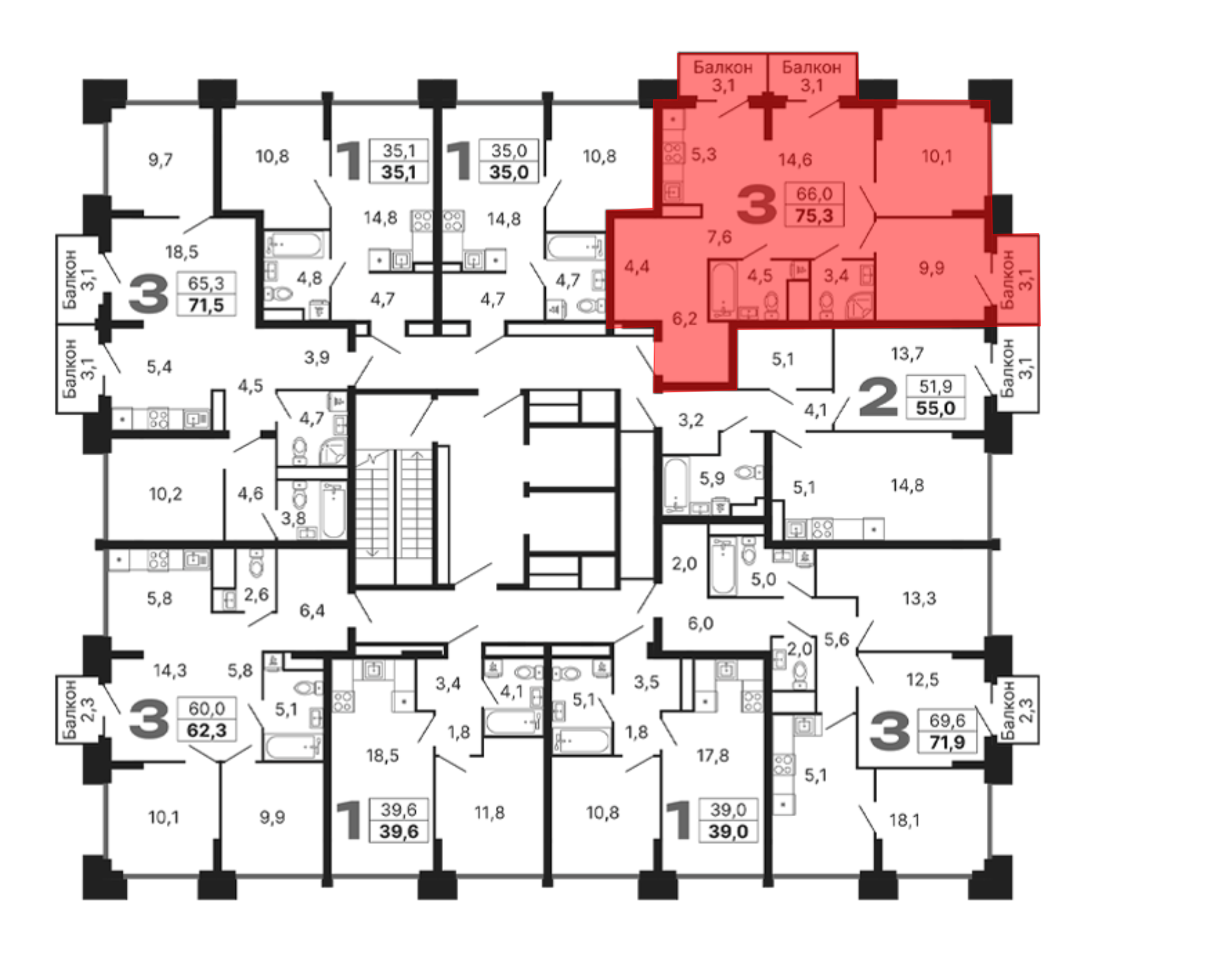 23 989 684 ₽3-к.квартира, 64.3 м², 14 эт.