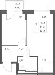 7 528 481 ₽2-к.квартира, 38.69 м², 10 эт.