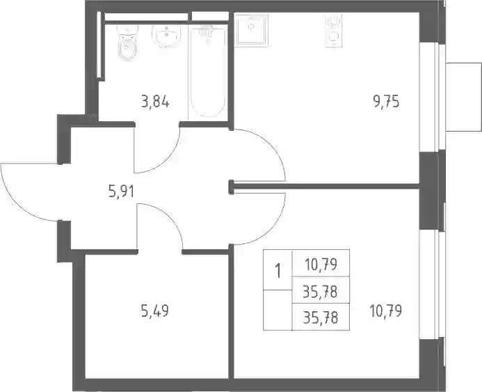 5 706 946 ₽1-к.квартира, 35.78 м², 11 эт.