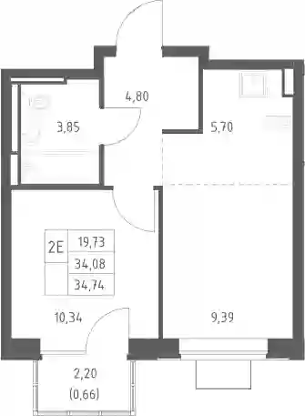 5 841 392 ₽2-к.квартира, 34.08 м², 10 эт.