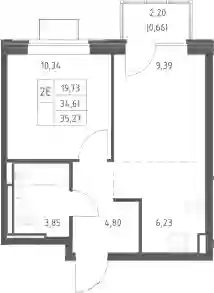 6 196 682 ₽2-к.квартира, 34.63 м², 10 эт.