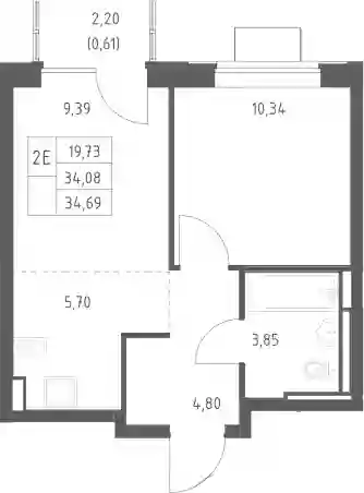 4 806 024 ₽2-к.квартира, 34.64 м², 10 эт.