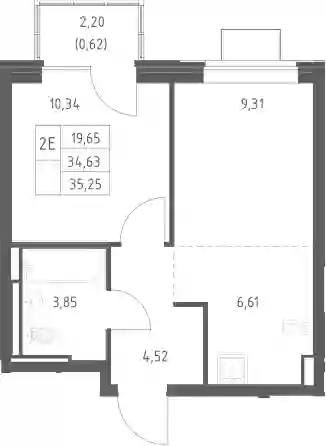 6 441 277 ₽2-к.квартира, 34.61 м², 9 эт.