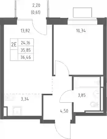 7 600 316 ₽2-к.квартира, 34.63 м², 6 эт.