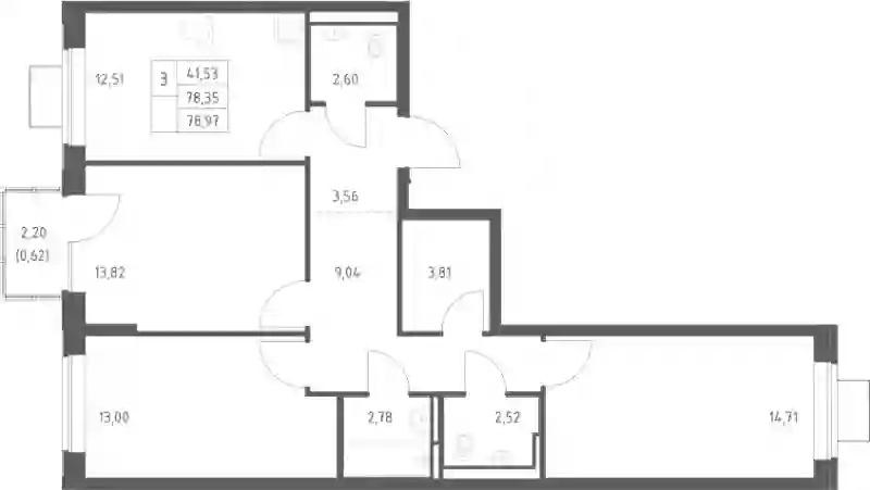 16 251 488 ₽3-к.квартира, 78.38 м², 3 эт.