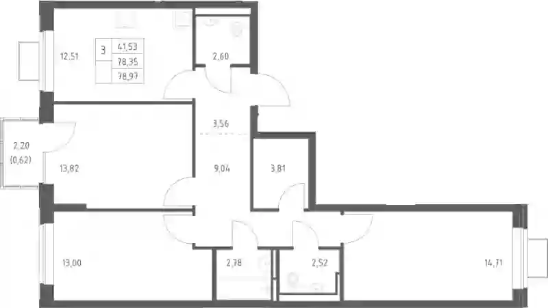 14 856 615 ₽3-к.квартира, 78.38 м², 7 эт.