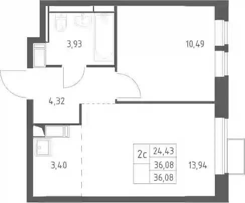 2-к.квартира, 36.08 м², 21 эт. в ЖК Большое Путилково Корпус 27