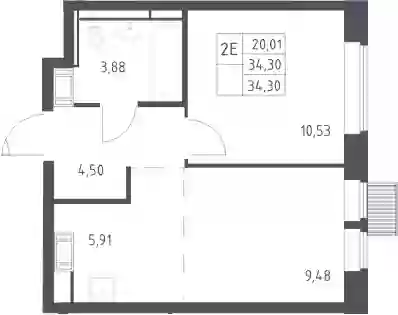8 053 616 ₽1-к.квартира, 34.32 м², 9 эт.