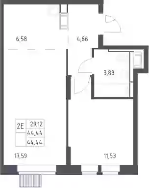 2-к.квартира, 44.41 м², 11 эт. в ЖК Большое Путилково Корпус 28