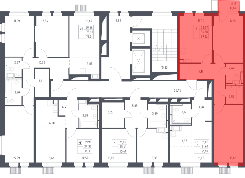 2-к.квартира, 56.88 м², 4 эт. в ЖК Большое Путилково Корпус 28