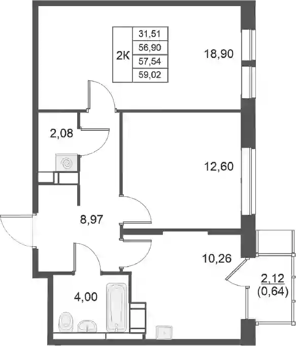 2-к.квартира, 56.9 м², 10 эт. в ЖК Большое Путилково Корпус 28