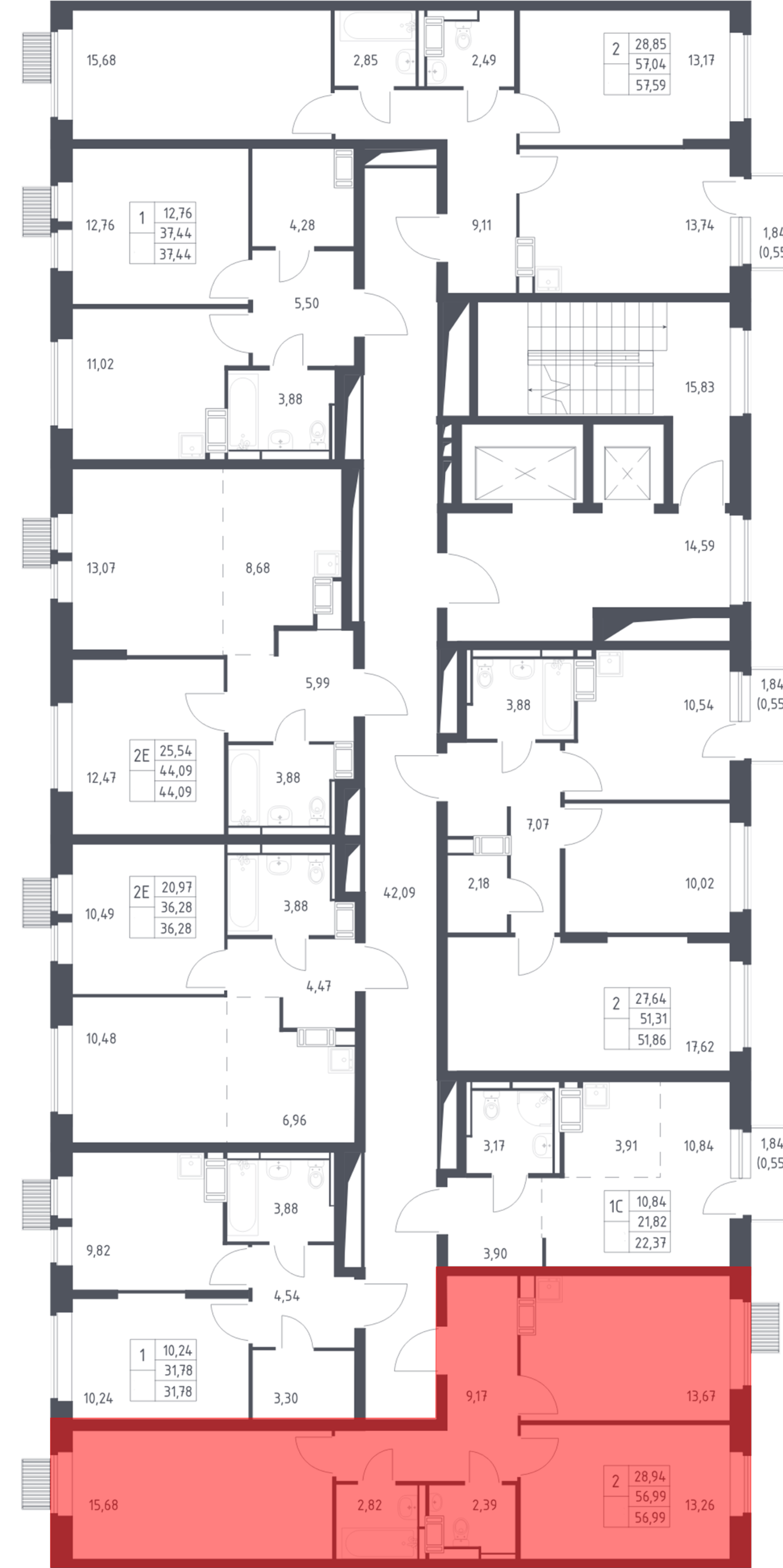 2-к.квартира, 56.99 м², 15 эт. в ЖК Большое Путилково Корпус 28