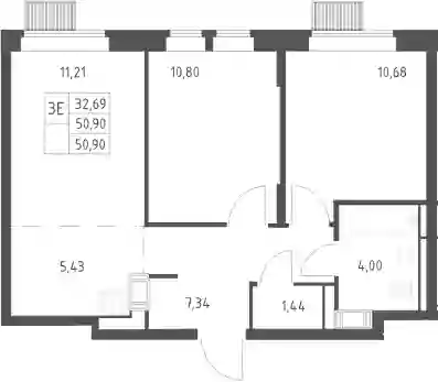 3-к.квартира, 50.9 м², 25 эт. в ЖК Большое Путилково Корпус 28
