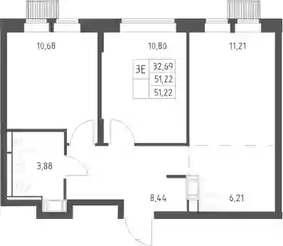 3-к.квартира, 51.22 м², 23 эт. в ЖК Большое Путилково Корпус 28