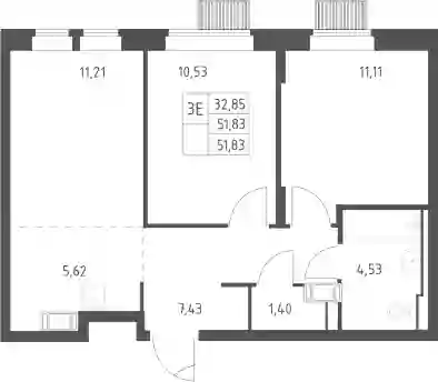 3-к.квартира, 51.83 м², 22 эт. в ЖК Большое Путилково Корпус 28