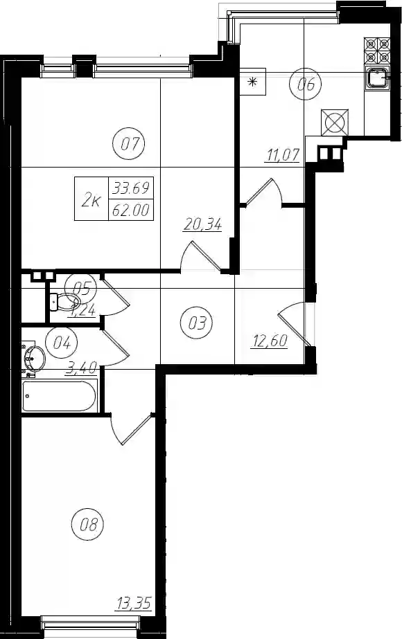 16 235 554 ₽2-к.квартира, 62 м², 2 эт.