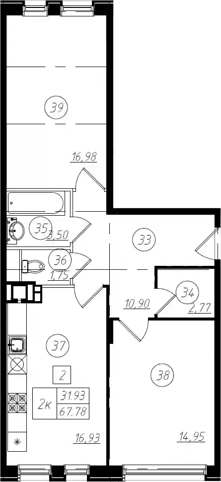 15 837 917 ₽2-к.квартира, 67.78 м², 1 эт.