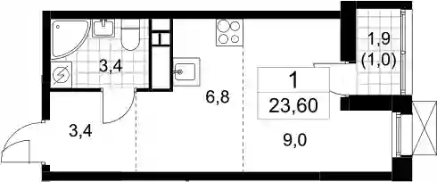 9 605 860 ₽Студия, 22.6 м², 15 эт.