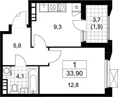 1-к.квартира, 32 м², 19 эт. в ЖК Бунинские кварталы Корпус 5.2