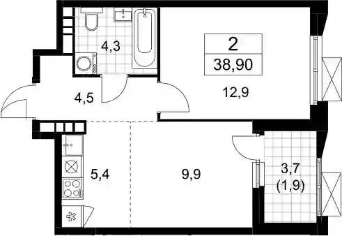 11 305 740 ₽1-к.квартира, 35.4 м², 9 эт.