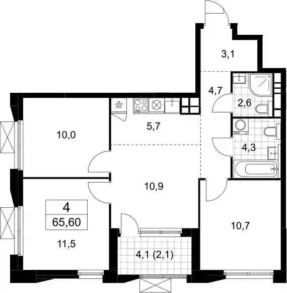 19 795 842 ₽4-к.квартира, 65.1 м², 18 эт.