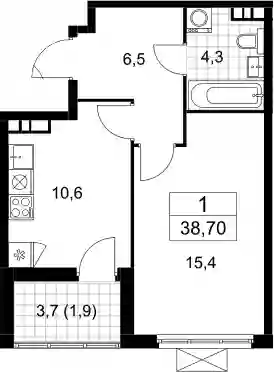 10 600 968 ₽1-к.квартира, 34.7 м², 15 эт.