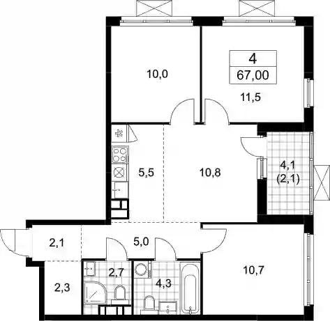 20 639 960 ₽4-к.квартира, 65.1 м², 21 эт.