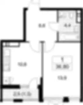 1-к.квартира, 35.4 м², 17 эт. в ЖК Бунинские кварталы Корпус 5.4