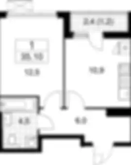 13 530 550 ₽1-к.квартира, 35 м², 6 эт.