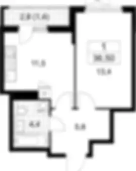 11 305 740 ₽1-к.квартира, 35.4 м², 9 эт.