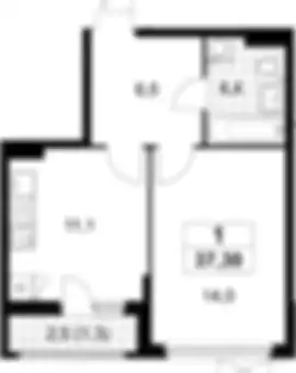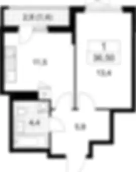 11 152 500 ₽2-к.квартира, 36 м², 19 эт.