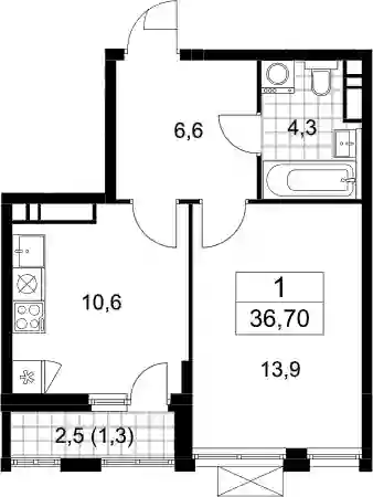 10 600 968 ₽1-к.квартира, 34.7 м², 15 эт.