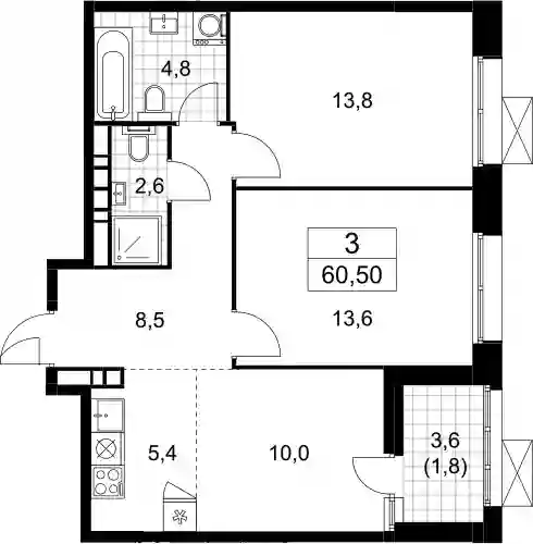 3-к.квартира, 58.7 м², 19 эт. в ЖК Бунинские кварталы Корпус 6.1
