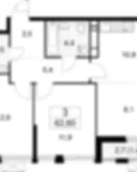3-к.квартира, 58.7 м², 21 эт. в ЖК Бунинские кварталы Корпус 6.1