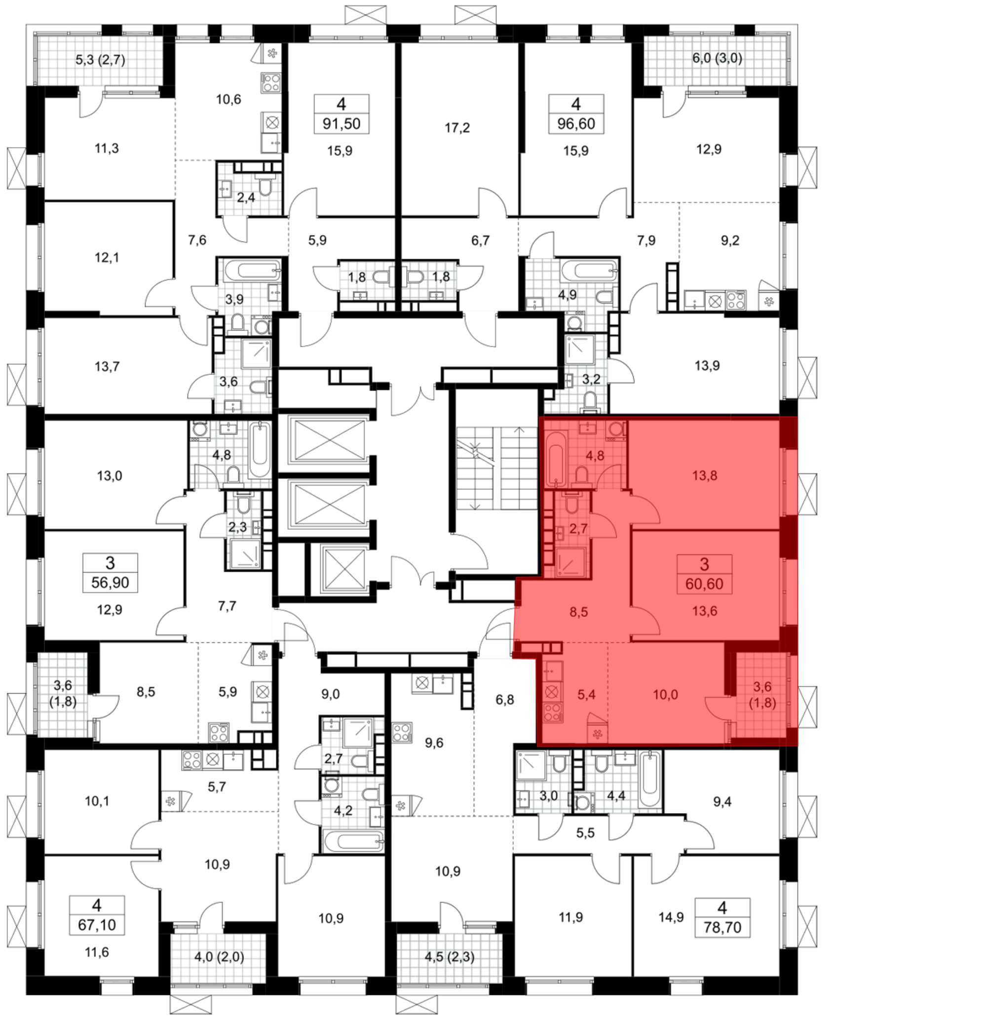 40 108 110 ₽4-к.квартира, 88.8 м², 21 эт.
