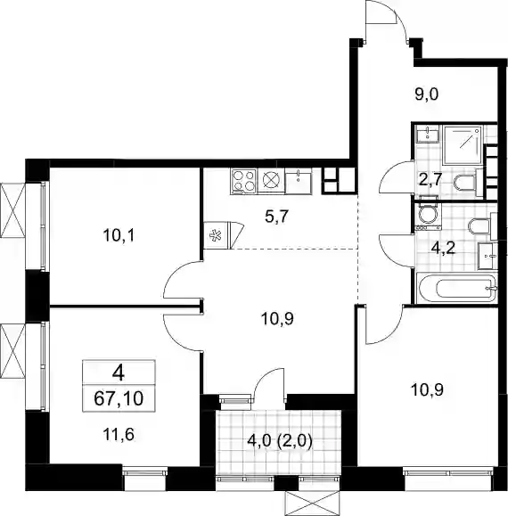 40 108 110 ₽4-к.квартира, 88.8 м², 21 эт.