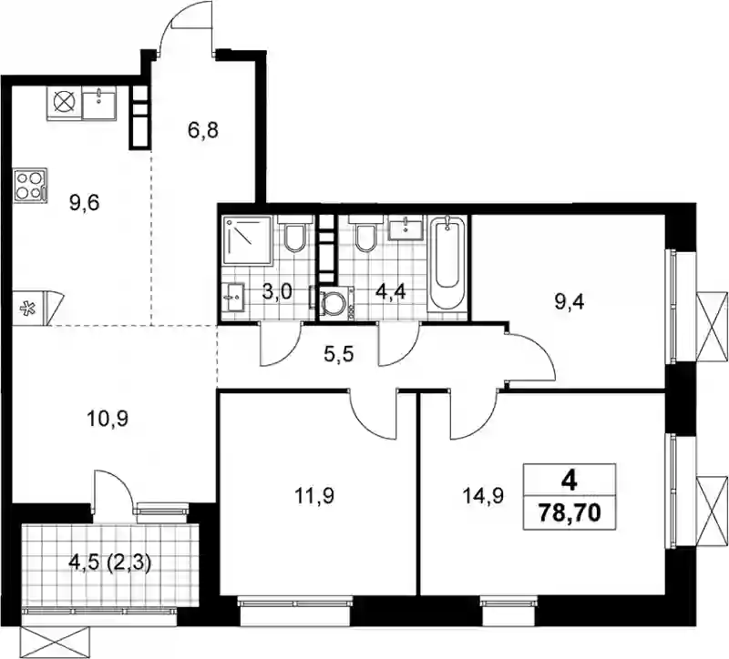 40 108 110 ₽4-к.квартира, 88.8 м², 21 эт.