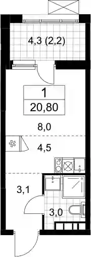 11 274 432 ₽Студия, 18.6 м², 9 эт.