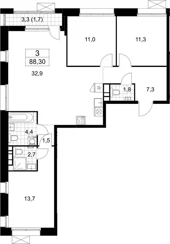 24 429 249 ₽3-к.квартира, 86.5 м², 7 эт.