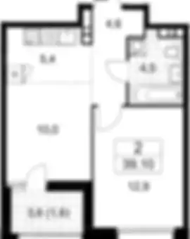 18 591 702 ₽2-к.квартира, 45.1 м², 13 эт.