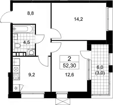 14 865 224 ₽2-к.квартира, 48.9 м², 8 эт.