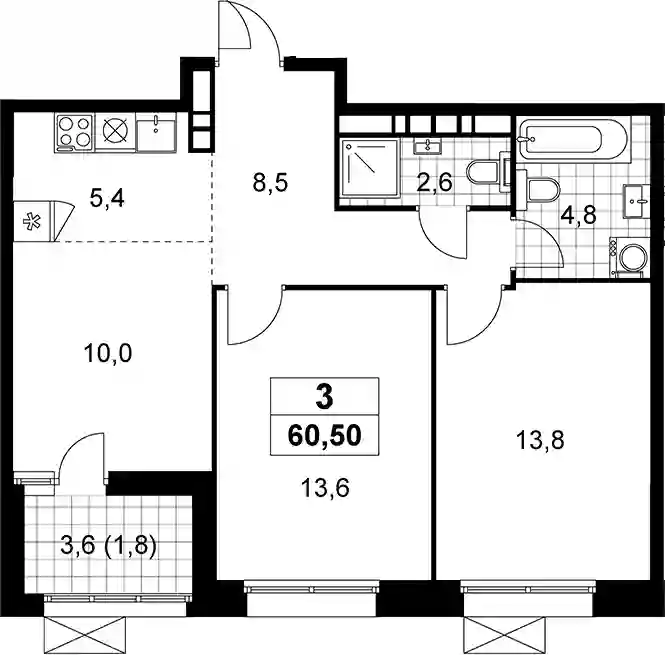 21 025 119 ₽3-к.квартира, 55.1 м², 18 эт.