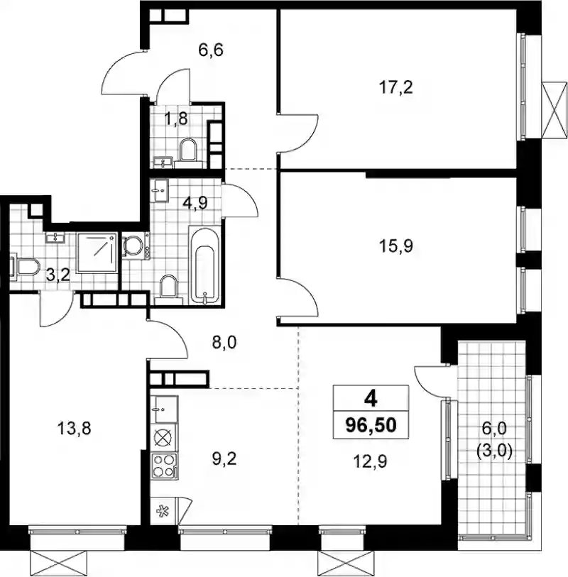 26 980 065 ₽4-к.квартира, 86.6 м², 6 эт.