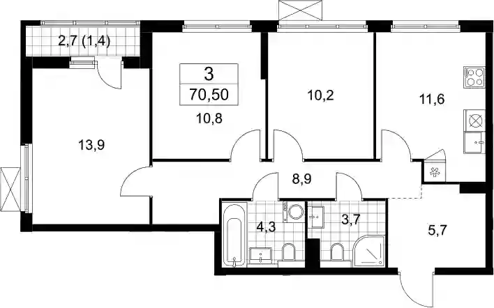 22 418 856 ₽3-к.квартира, 68.3 м², 3 эт.
