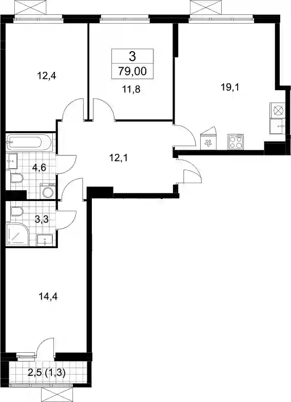 4-к.квартира, 77.7 м², 9 эт. в ЖК Бунинские кварталы Корпус 7.1
